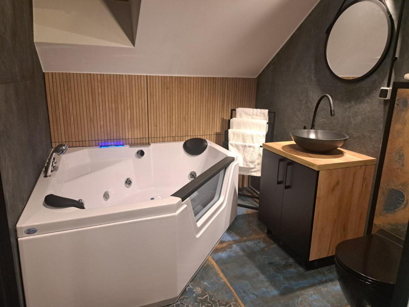 Apartament typu Deluxe Suite z wanną z hydromasażem. This suite features a hot tub. Boasting a private entrance, this air-conditioned suite features 1 living room, 1 separate bedroom and 1 bathroom with a bath and a shower. Guests can make meals in the kitchen that has a stovetop, a refrigerator and kitchenware. The spacious suite features a flat-screen TV with cable channels, a tea and coffee maker, a dining area, a high chair for children as well as city views. The unit has 2 beds. Apartament typu Suite - 4 osobowy. Powierzchnia pokoju ok.: 86 mkw.